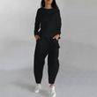 Solid Color Fashion Sweatshirt Long Sleeve Back Slit Top With Pockets Loose Trousers Women's Clothing