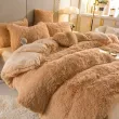 Solid Color Fluffy Long Plush Winter Bedding Set with Throw Pillow Queen Size Thick Warm Duvet Cover Set Soft Double Bed Sets