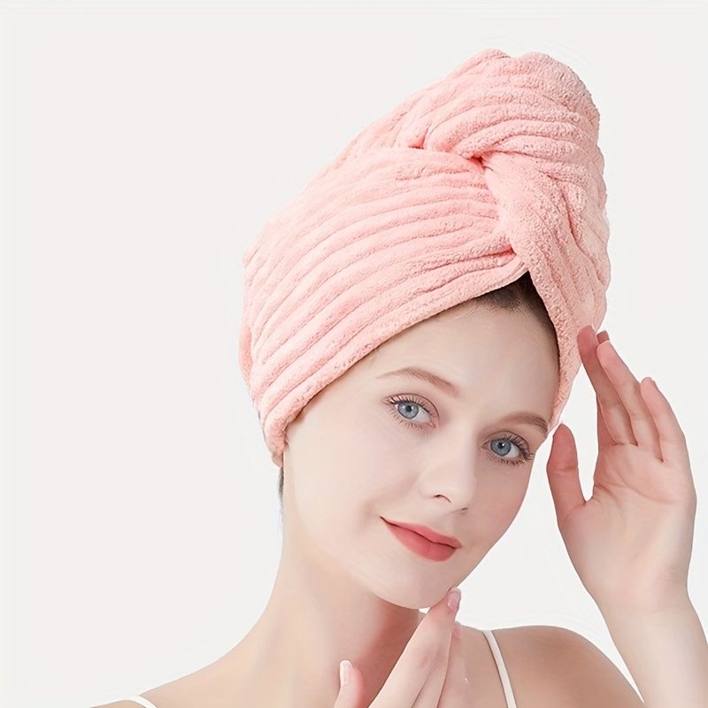 Solid Color Hair Towel - Textured 1Pc Dry Hair Cap (9.8"X25.5"), Absorbent & Lightweight, Button-Down Wrap Design for Women
