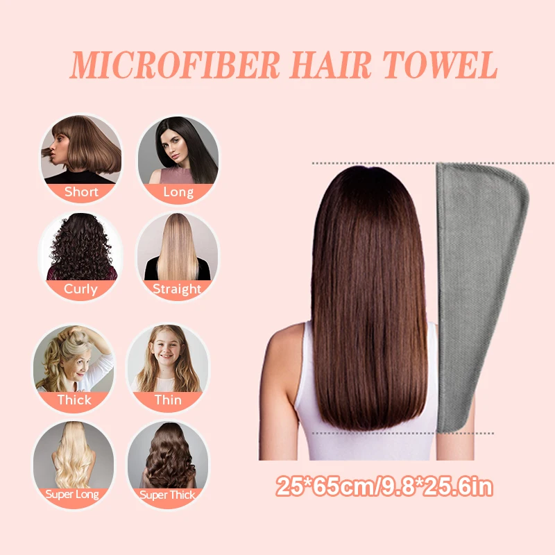 Solid color hair towel Textured dry hair cap 9.8 "X 25.5" absorbent hair towel wrap for button-down women