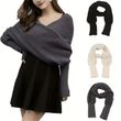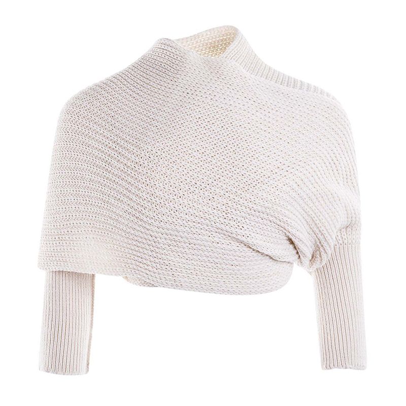 Solid Color Knit Shawl With Long Sleeves Elegant Soft Warm Short Top Autumn Winter Coldproof Elastic Wrap Scarf