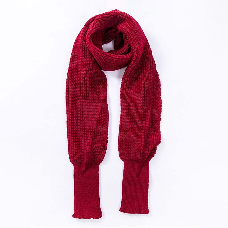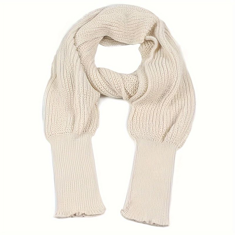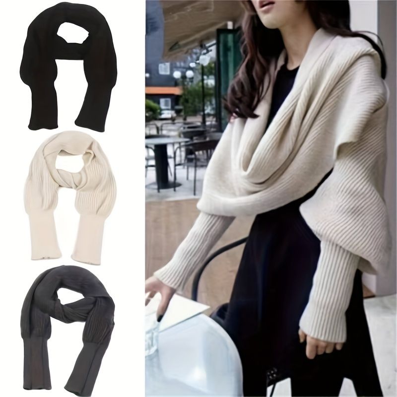 Solid Color Knit Shawl With Long Sleeves Elegant Soft Warm Short Top Autumn Winter Coldproof Elastic Wrap Scarf