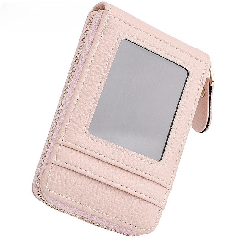 Solid Color Lichee Pattern Short Wallet Zipper Around Coin Purse Women's Credit Card Holder