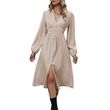 Solid Color Long Sleeve Split Apricot Dress Spring Apricot S