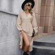 Solid Color Long Sleeve Split Apricot Dress Spring Apricot XL