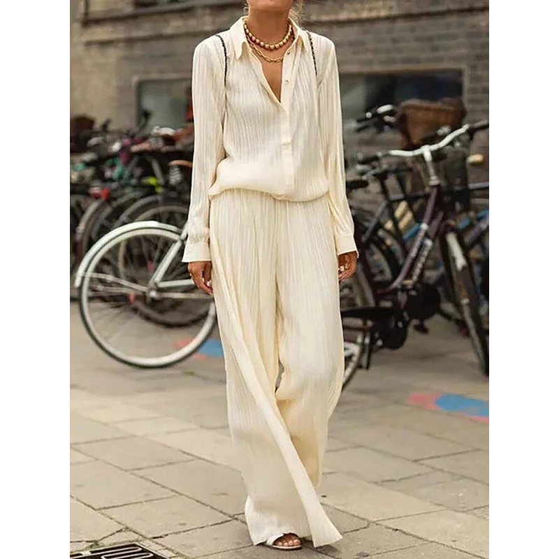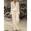 Solid Color Long-sleeved Shirt Loose Suit Beige 2XL