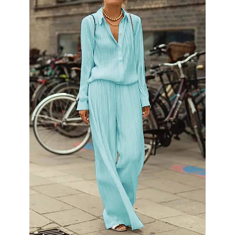 Solid Color Long-sleeved Shirt Loose Suit Sky Blue 2XL