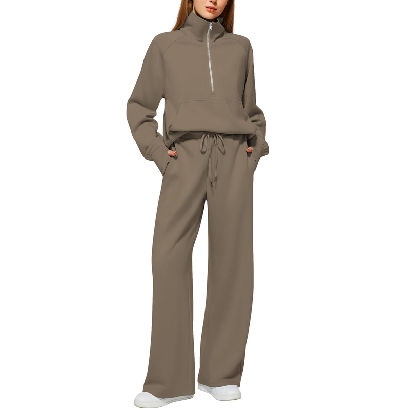 Solid Color Long-sleeved Sweater Trousers Suit Women's Suit Brown L