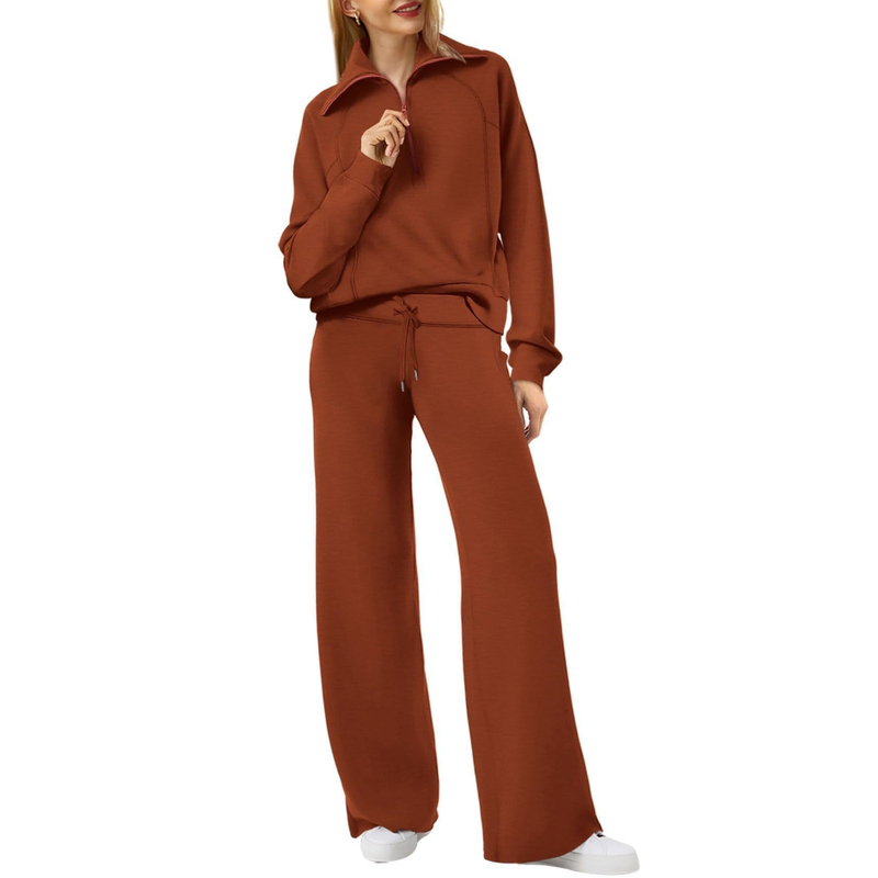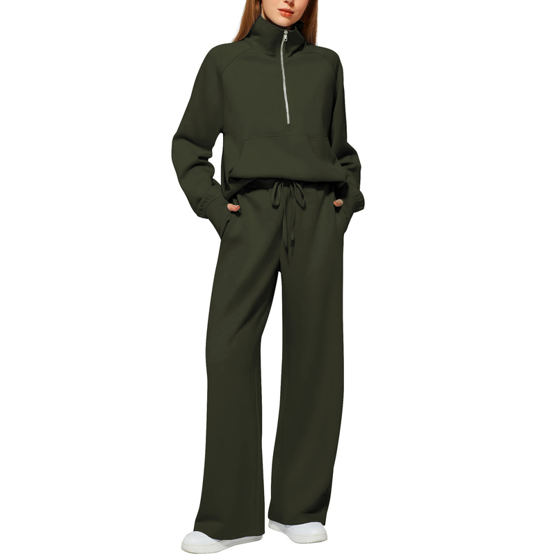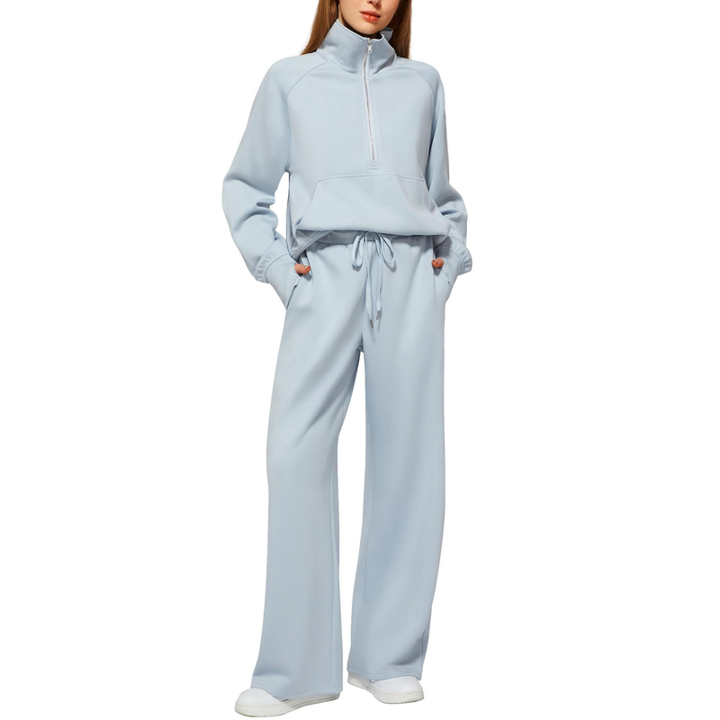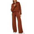 Solid Color Long-sleeved Sweater Trousers Suit Women's Suit Ocean Green M
