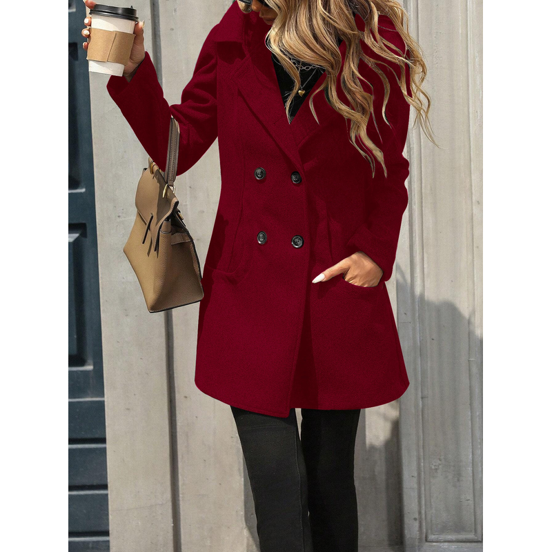 Solid Color Loose Fit Fashion Slim Hat Woolen Coat Wine Red L
