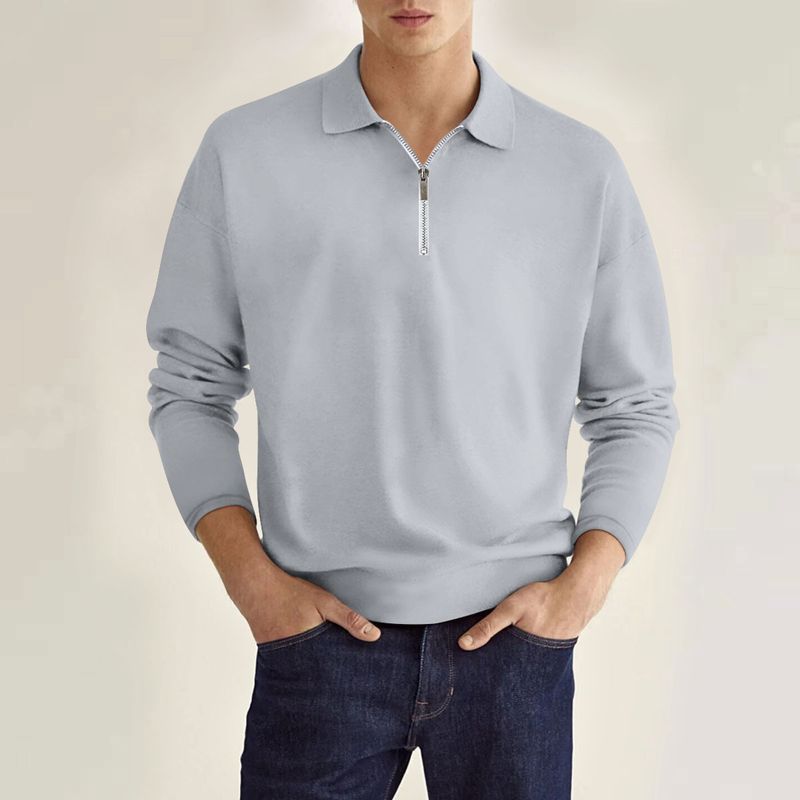 Solid Color Men's Long Sleeve Sports Polo Shirt Gray XXXL