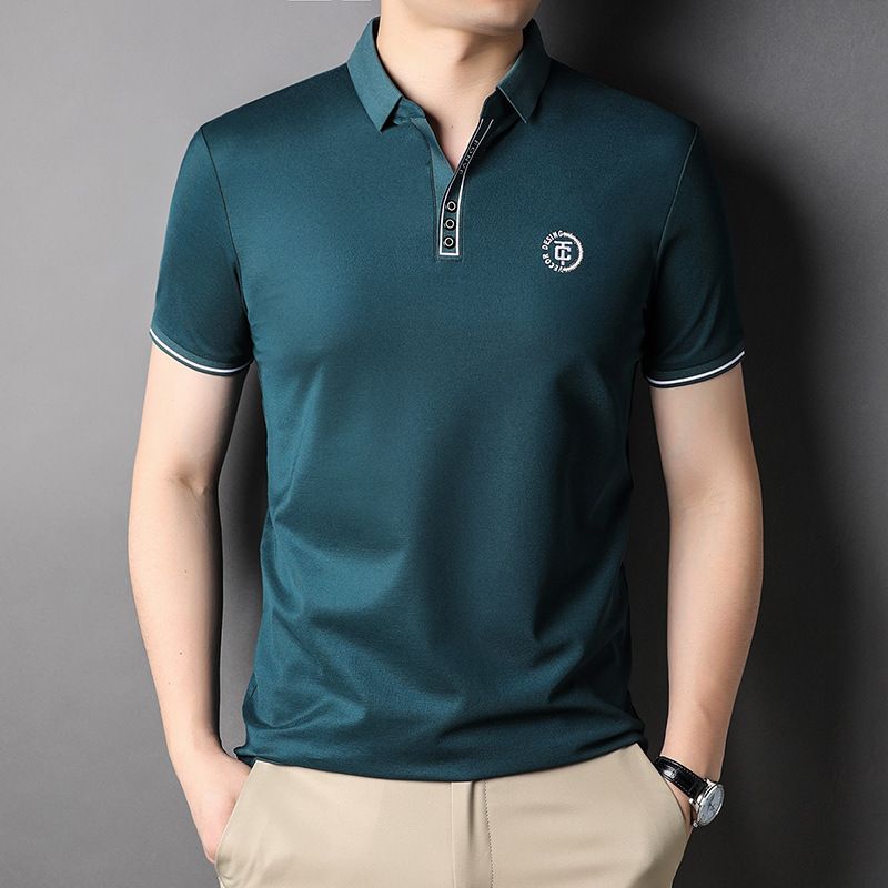 Solid Color Men's Polo Shirt Top Half Sleeve Green 8855 XXXL