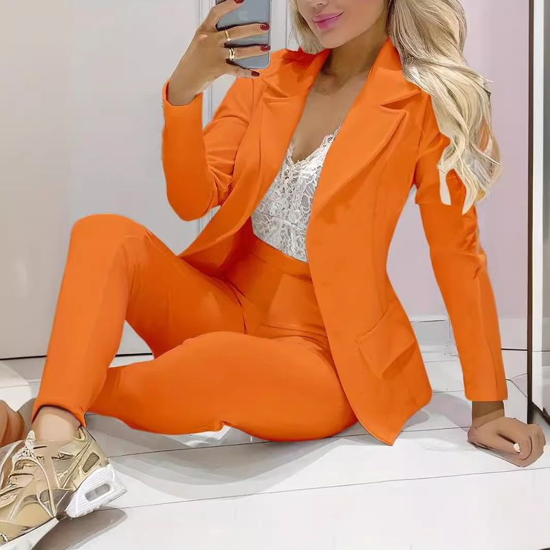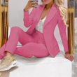 Solid Color Minimalist Long Sleeve Suit Top And Trousers Suit Dark Green XS