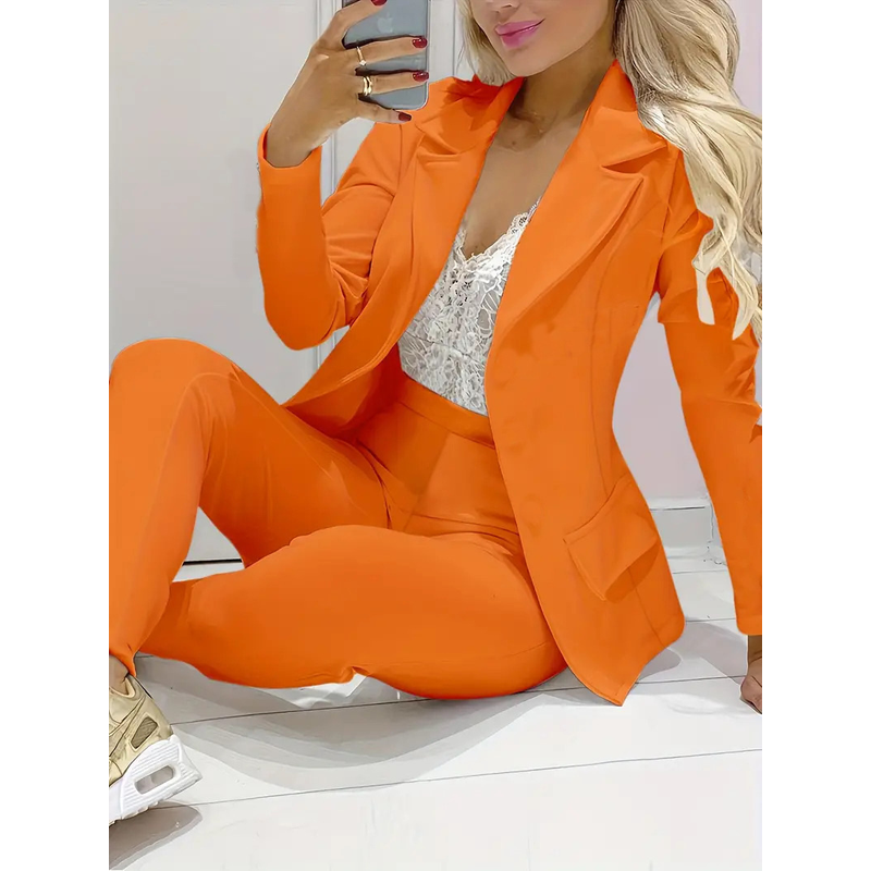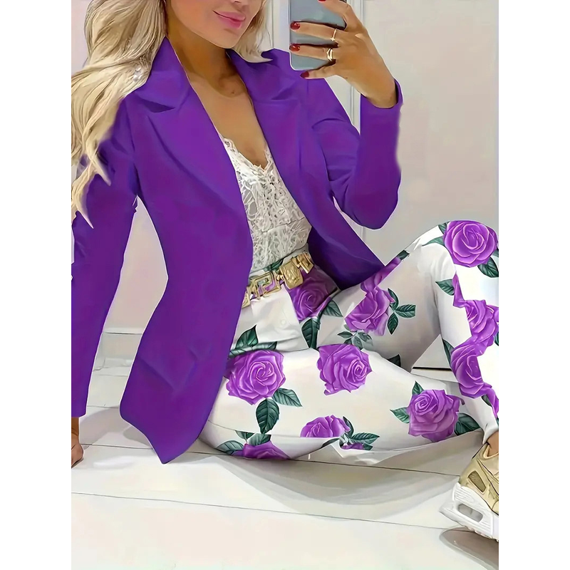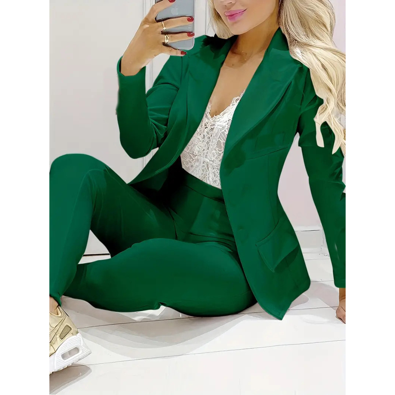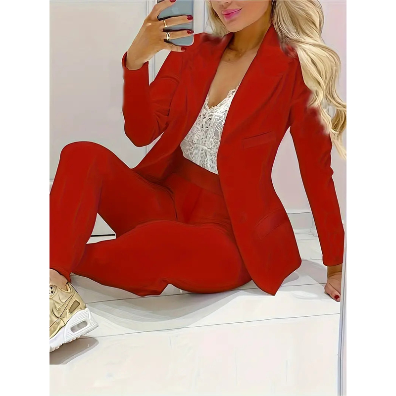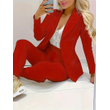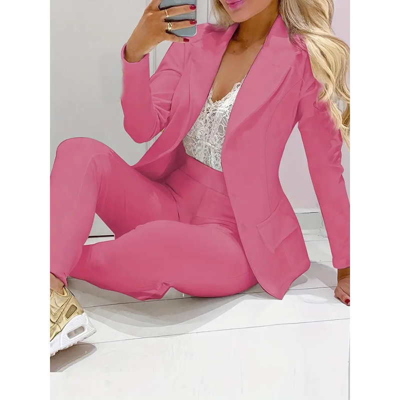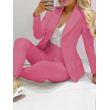 Solid Color Minimalist Long Sleeve Suit Top And Trousers Suit Dark Pink 2XL