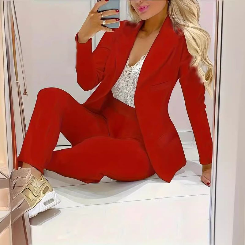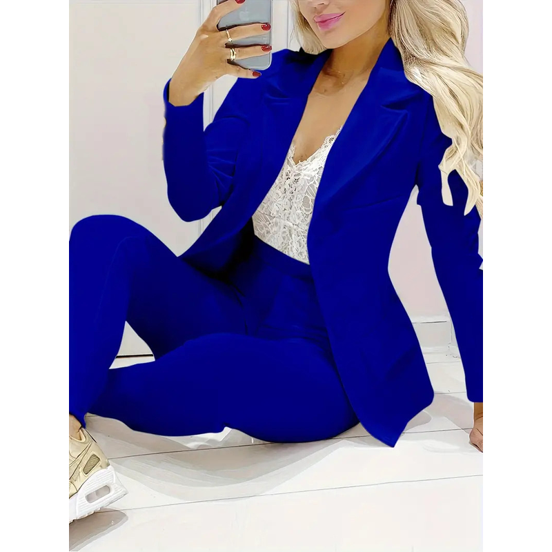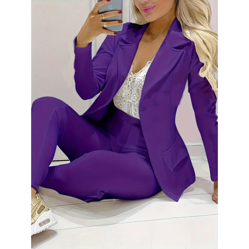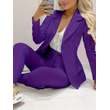 Solid Color Minimalist Long Sleeve Suit Top And Trousers Suit Dark Purple 2XL