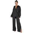 Solid Color Polo Collar Single-breasted Long Sleeve Tied Top Smart Trousers Suit Black M