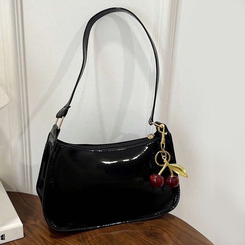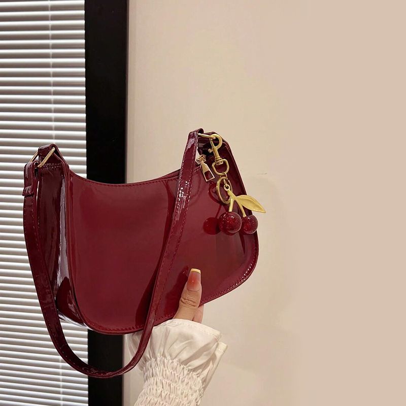 Solid Color PU Leather Women Shoulder Bags Fashion Ladies Cherry Pendant Handbags Purse Casual Design Female Hobos Underarm Bag