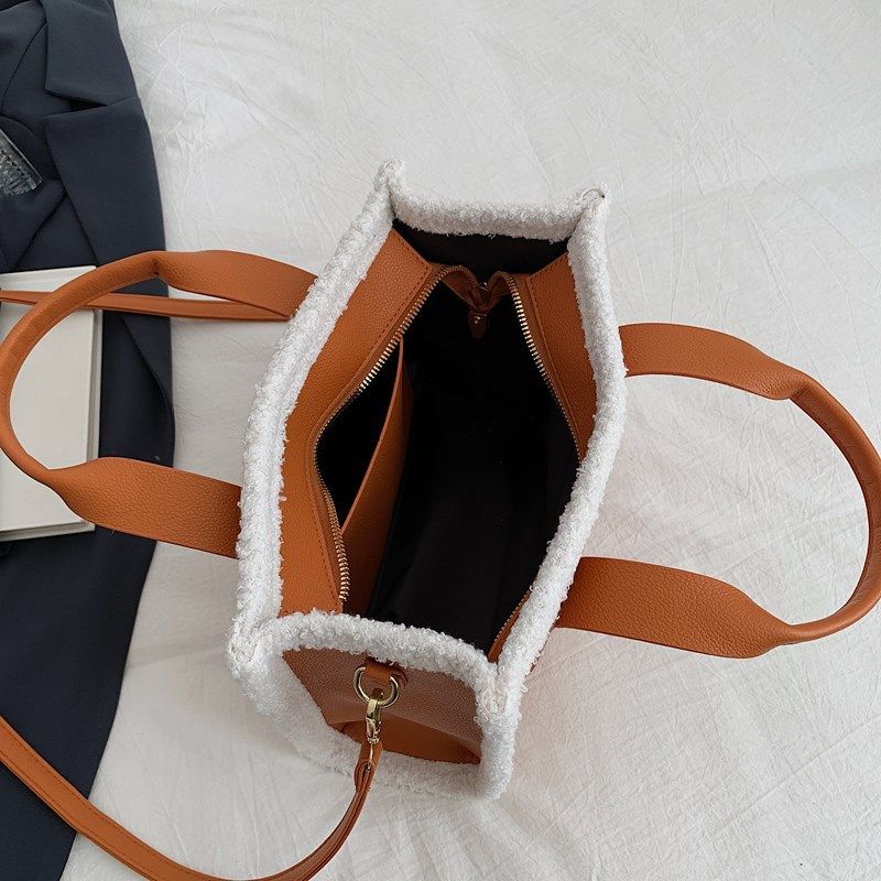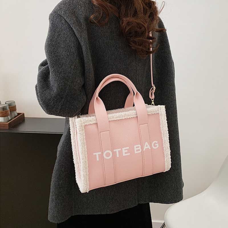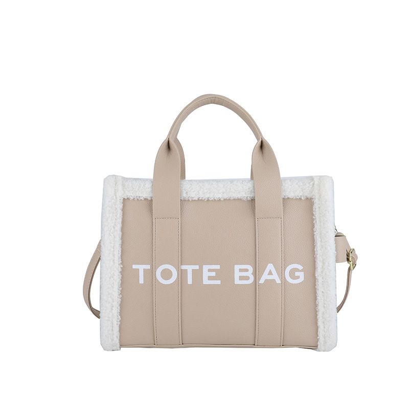 Solid Color Quilted Letter Print Crossbody Bag Women's Trendy Casual Style Plush Edge Detail Zippered Handbag Ideal Outings