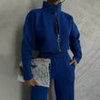Solid Color Round Neck Pullover Long Sleeve Sweater Fashion Casual Trousers Suit Blue L