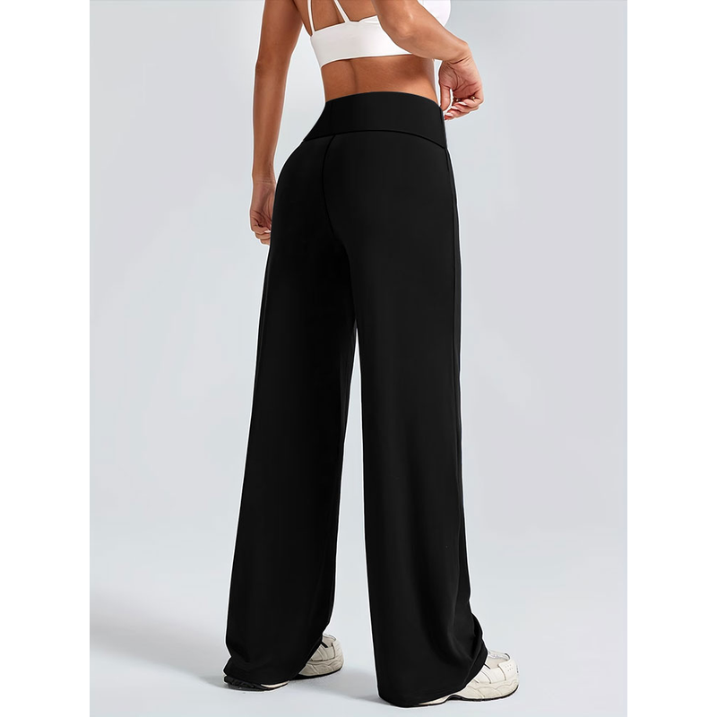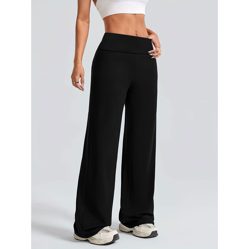 Solid Color Straight Wide Leg Pants Womens Mid Waist Yoga Leggings Fitness Tights Naked Feeling Pilates Running Sports Trousers