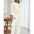 Solid Color Women's Round Neck Long Sleeve Trousers Warm Suit Beige S
