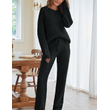 Solid Color Women's Round Neck Long Sleeve Trousers Warm Suit Black 2XL