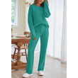 Solid Color Women's Round Neck Long Sleeve Trousers Warm Suit Green S