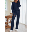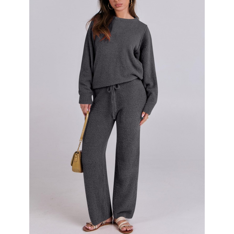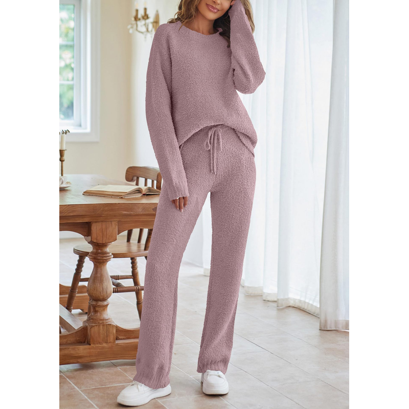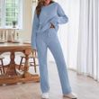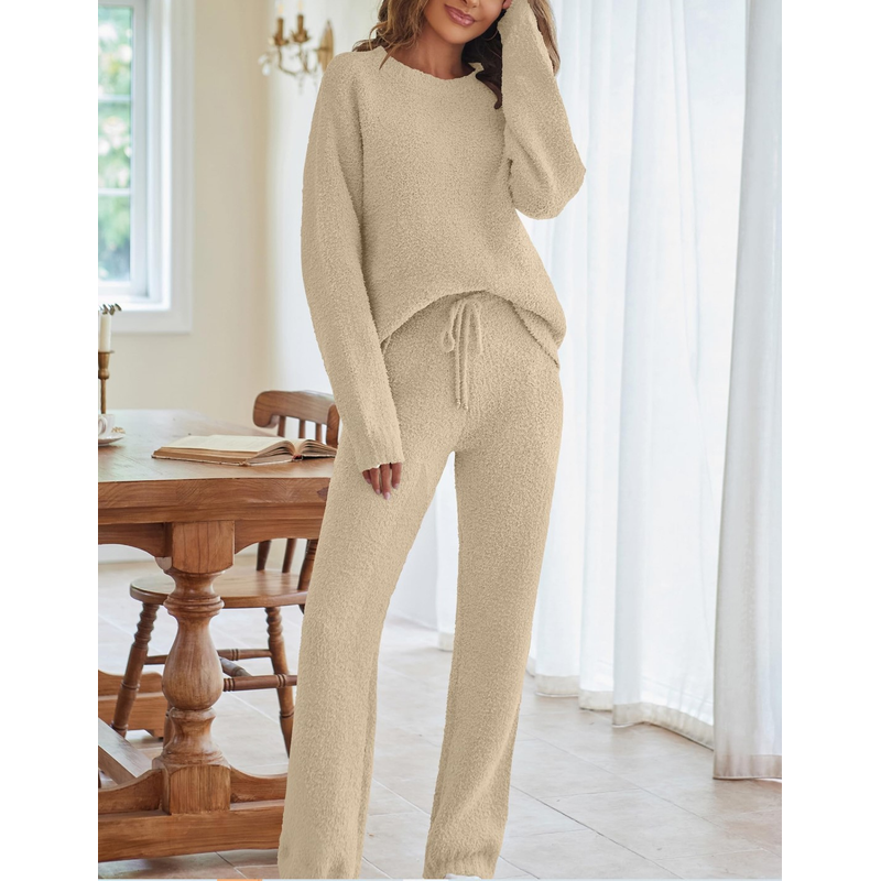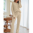 Solid Color Women's Round Neck Long Sleeve Trousers Warm Suit Khaki 2XL