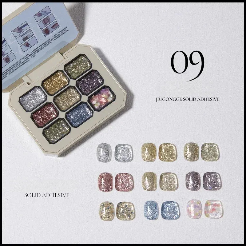 One can of 9 colors, upside down, no glue, easy to carry, not easy to mix colors, basically can meet your needs for nail colors.