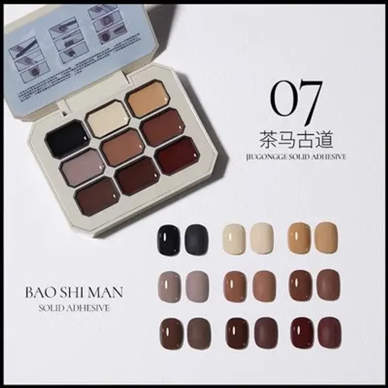 One can of 9 colors, upside down, no glue, easy to carry, not easy to mix colors, basically can meet your needs for nail colors.
