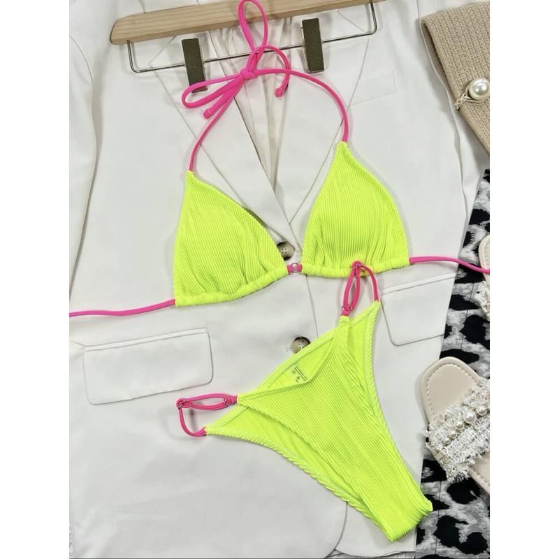 Solid Plaid Velvet Bikini Swimsuit Women Blue M