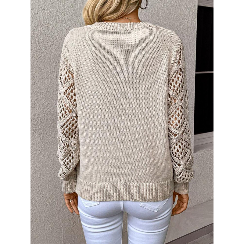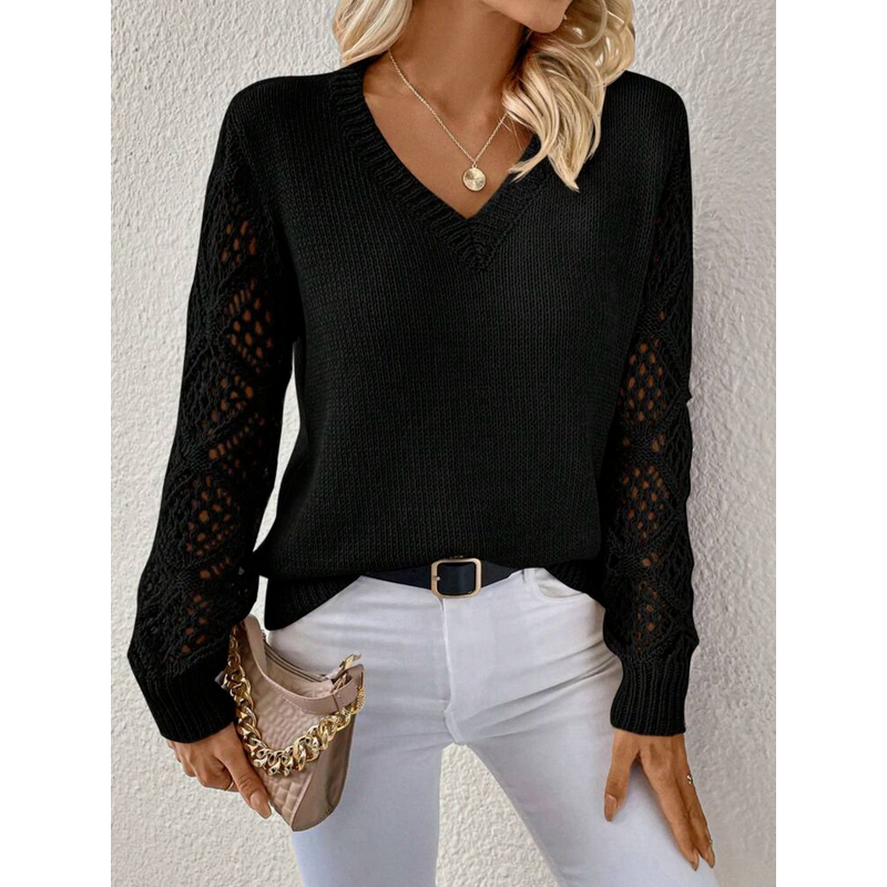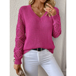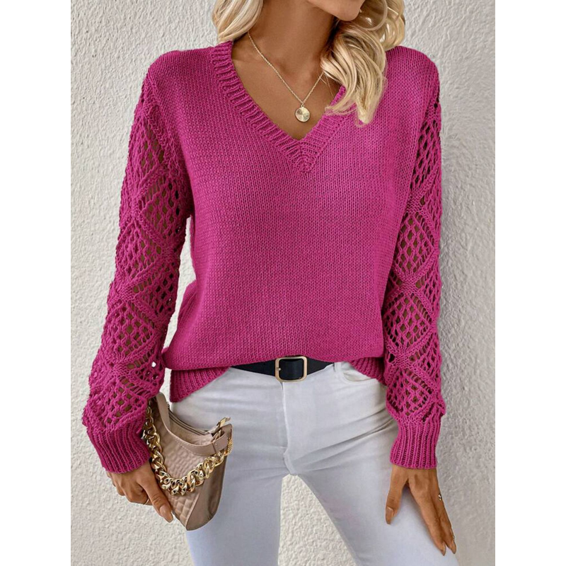 Solid V-neck Pullover Sweater With Hollow Long Sleeve Fashion Tops For Women Clothing