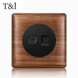 Solid Wood 1-4 Gang Dual Control Light Switch UK/EU Standard Vintage Brass Outlet 86x86mm with Blue LED Indicator 110-250V