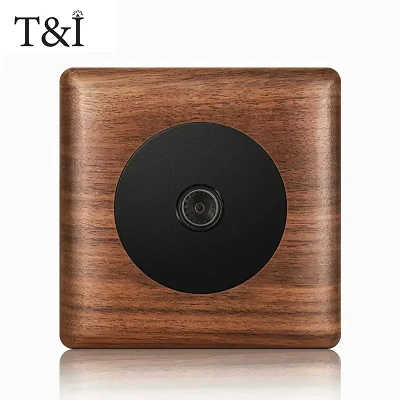 Solid Wood 1-4 Gang Dual Control Light Switch UK/EU Standard Vintage Brass Outlet 86x86mm with Blue LED Indicator 110-250V