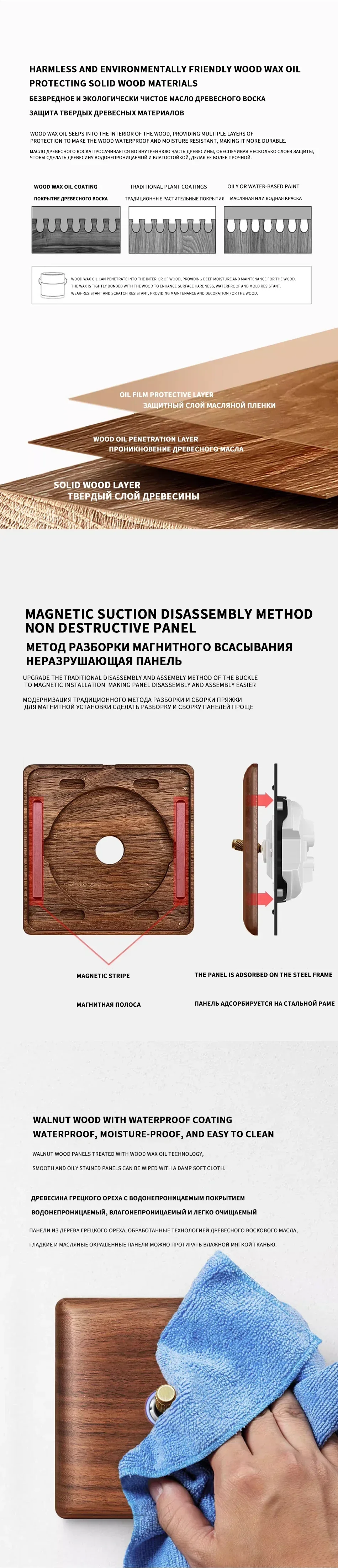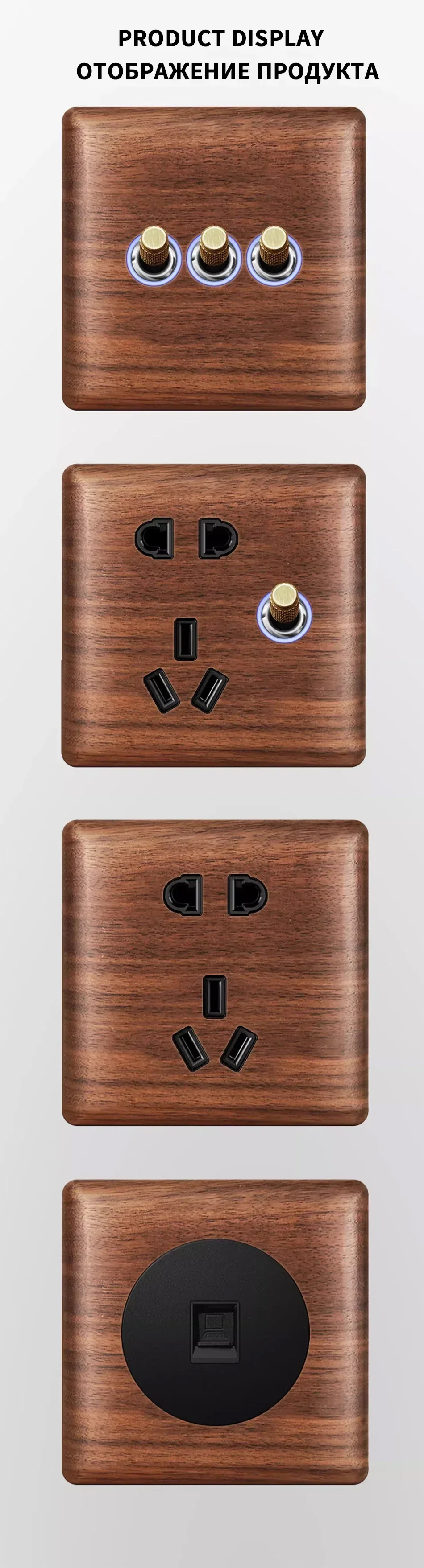 Solid Wood 1-4 Gang Dual Control Light Switch UK/EU Standard Vintage Brass Outlet 86x86mm with Blue LED Indicator 110-250V