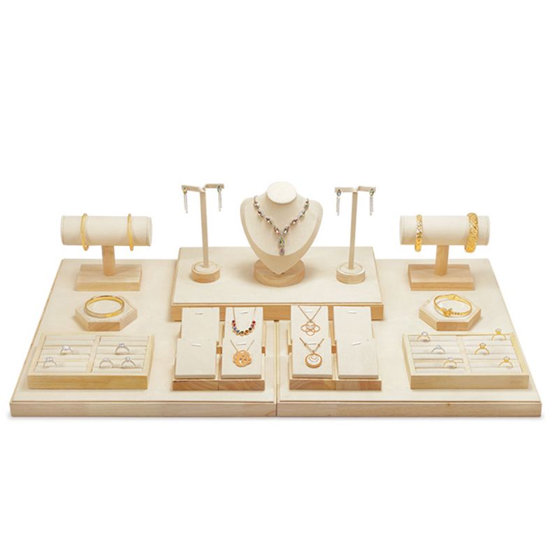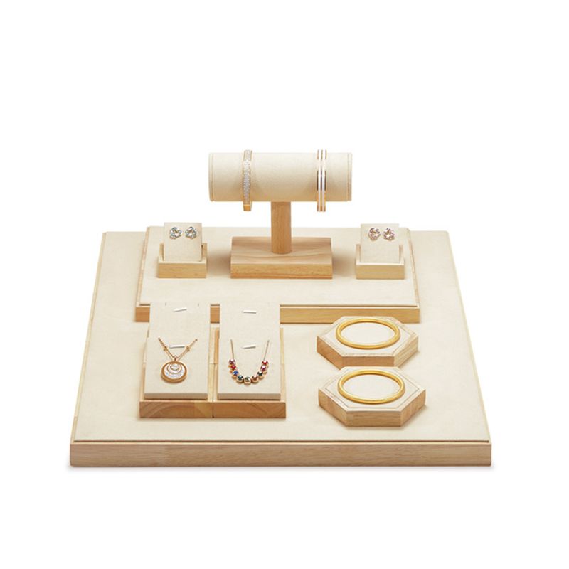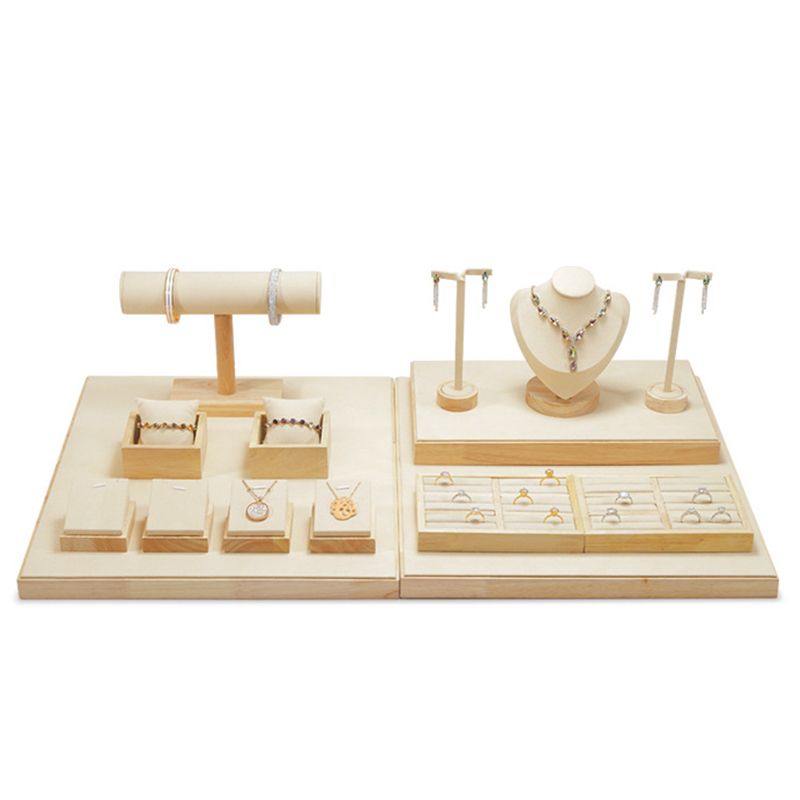Solid wood jewelry display props, jewelry display trays, rings, bracelets, necklaces, stud earrings, jade storage stand