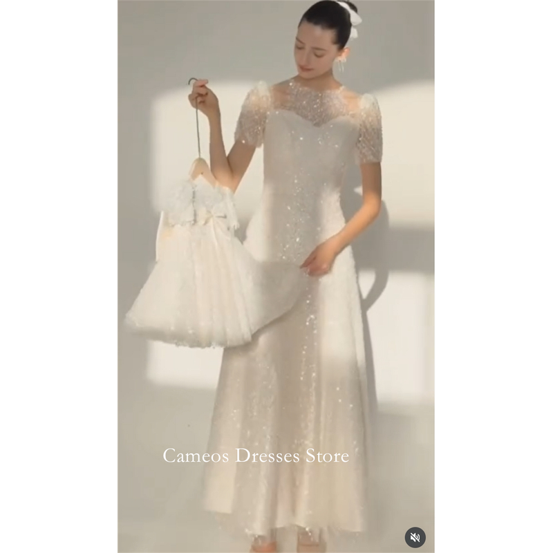SONDR Customized O-Neck Ivory Short Sleeves Wedding Dresses Simple A-Line Sequined Korea Brides Gowns Women Bridal Dresses