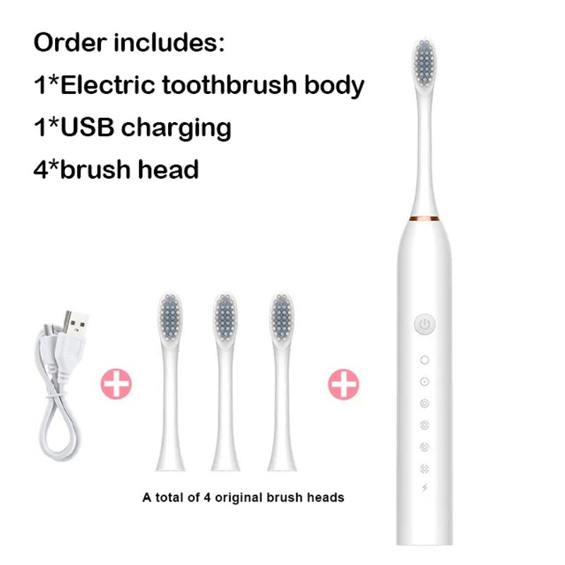 Rechargeable electric toothbrush has 6 brushing modes, which can meet all the needs of tooth cleaning: novice, gentle, cleaning, whitening, polishing, massage