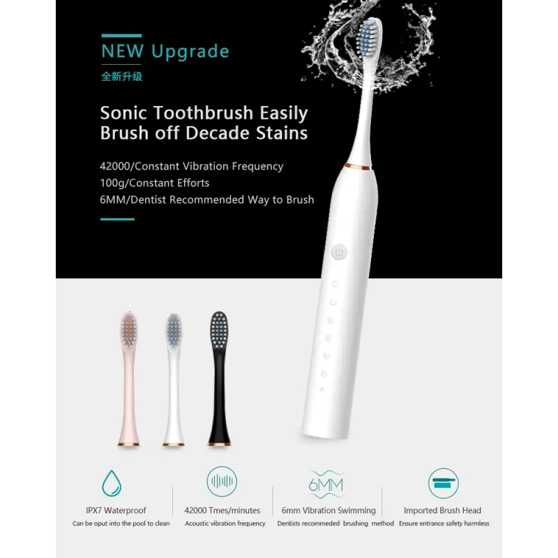 Through sound wave vibration, teeth can be thoroughly cleaned, and help prevent tooth decay and improve gum health.