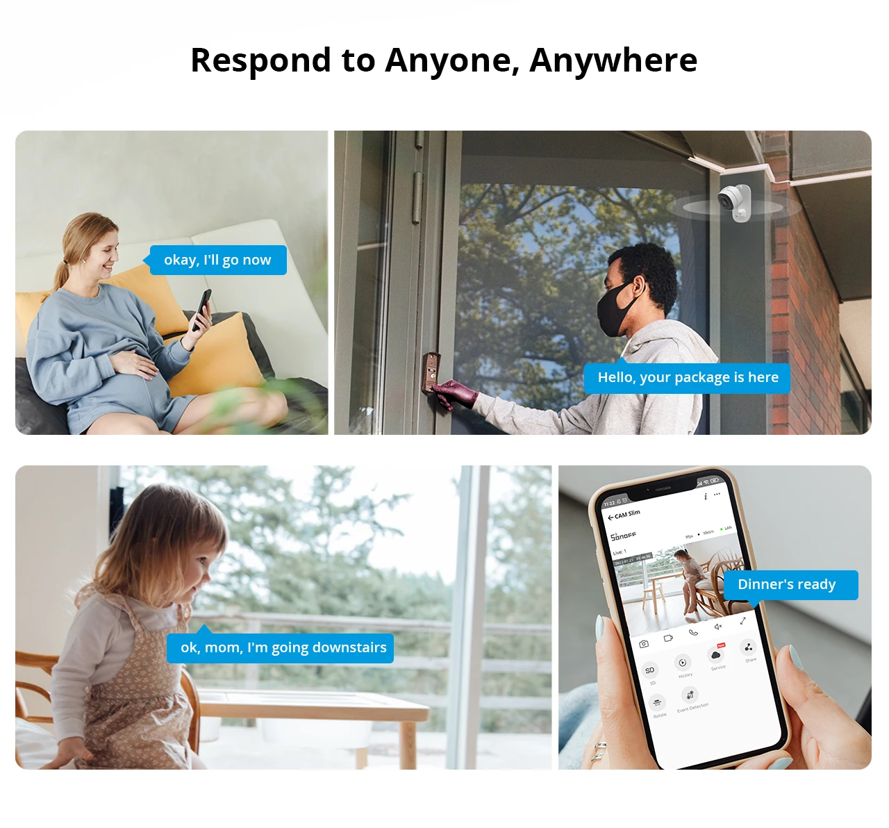 Higher call quality lets you chat with pets, family, visitors by the built-in speaker and microphone.
