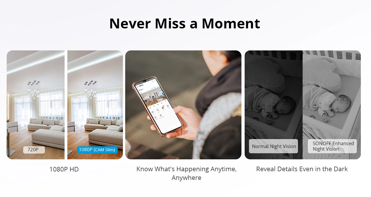 SONOFF 1080P HD Wi-Fi IOT Camera CAM Slim Smart Home Security Motion Detection Alarm Scene Linkage via eWeLink Alexa Google