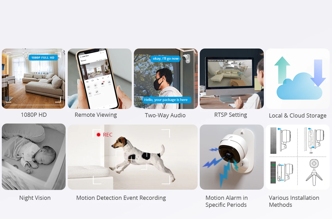 SONOFF CAM Slim smart home security camera offers 1080P HD resolution, night vision, motion detection & alarm to keep your home in a secure environment, day and night. Start recording as an executive action, CAM Slim starts recording as soon as the door opens to supervise your bedroom. RTSP protocol allows you to view the monitoring screen on your PC. Two-way audio always lets you communicate with pets, and family anywhere, anytime. CAM Slim supports max. 256G Micro SD card storage and mass cloud storage. Flexible and Easy Design provides you with many installation method choices, like magnetic mount, stick, and screw mount, you can also mount on tripods that screw 1/4 inch.