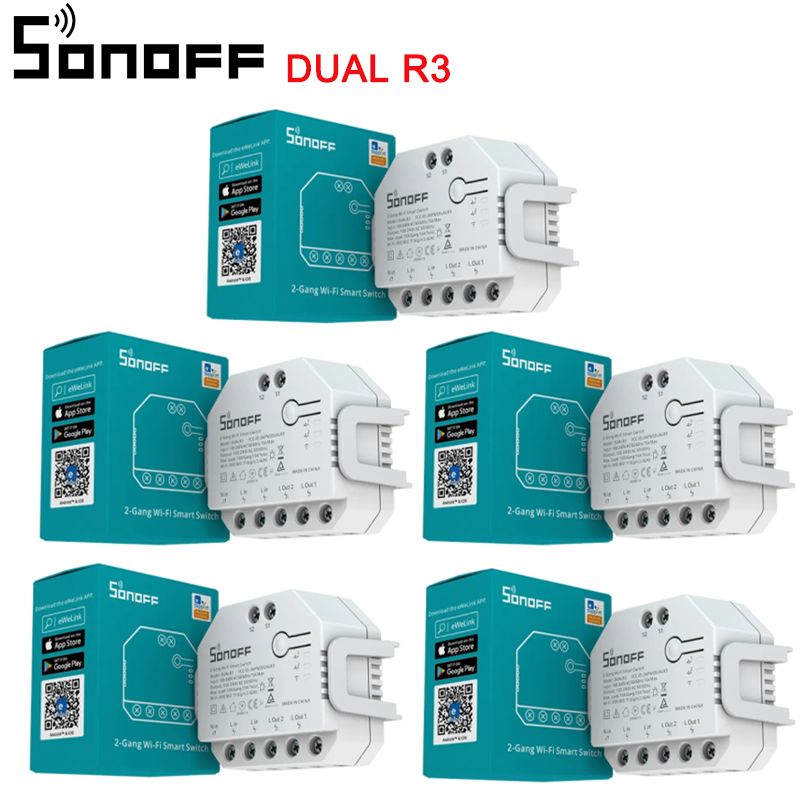 SONOFF DUALR3 Dual Relay Module DIY MINI Power Metering Smart Switch Two Way Smart Home Control via eWeLink Alexa Google