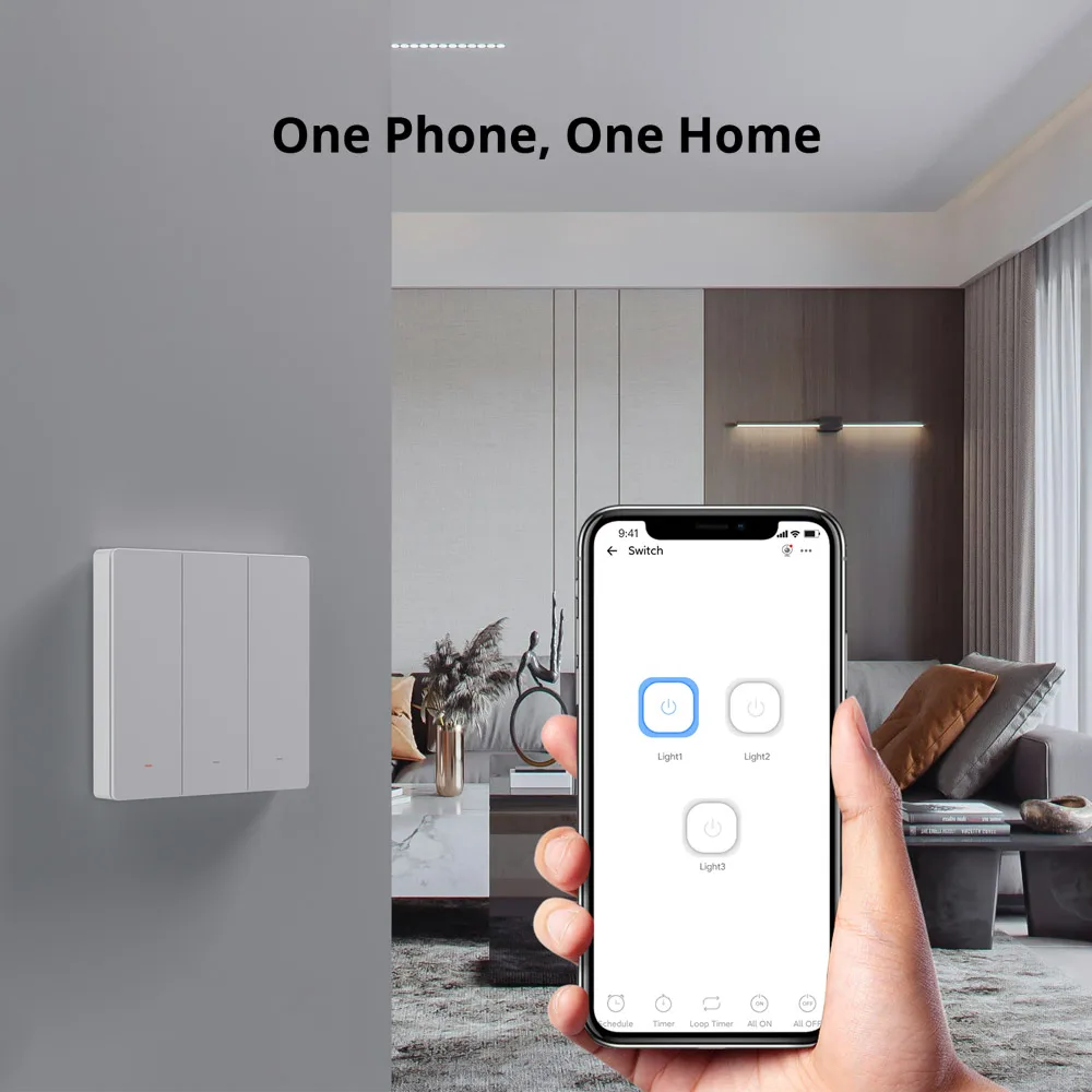 As a smart wall switch, M5 Matter adopts physical buttons for local control. Just press the button, and the lights will be turned on. Through the eWeLink APP, you can manage devices at any time and don't worry about forgetting to turn off the electrical appliances when you go out. M5 Matter supports voice control, such as Alexa, Google Home, Apple Siri, and Alice. When you are busy, you can turn on the light by your voice.