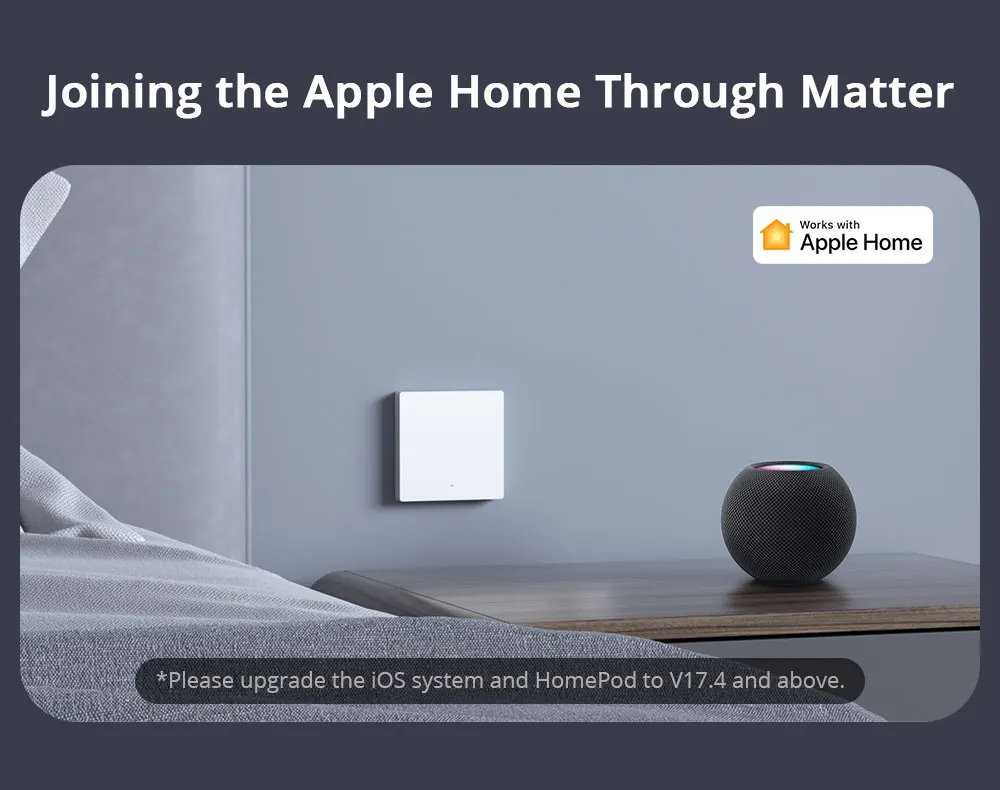 Supports work with Apple ecosystem through Matter to control M5 Matter in the Apple Home App, and create automation with devices from different manufacturers.