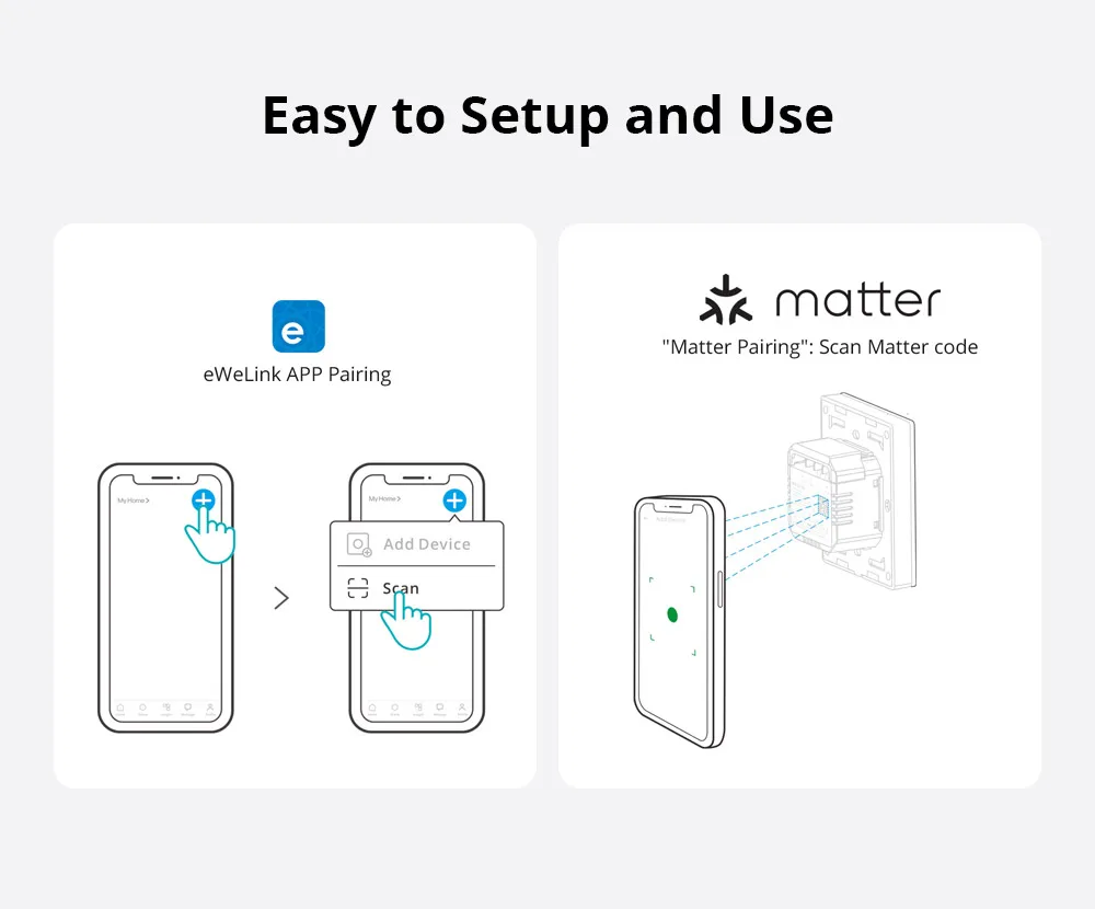 Crafted from high-grade PC V0 material, M5 Matter ensures high-temperature resistance and excellent flame-retardance. Separate the high and low voltage which you can disassemble the switch safely. And CE certified, safe performance is guaranteed.