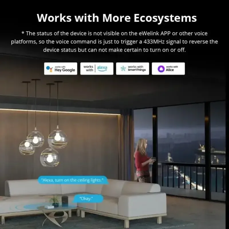 The RF BridgeR2 can work with SONOFF DW2-RF wireless door/window sensor that allows users to set the smart scene for the sensor and the device to be controlled, then when you open/close the door, the device will be triggered on or off.