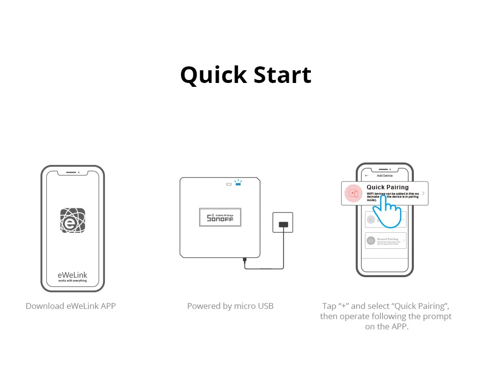 The RF BridgeR2 can work with SONOFF DW2-RF wireless door/window sensor that allows users to set the smart scene for the sensor and the device to be controlled, then when you open/close the door, the device will be triggered on or off.