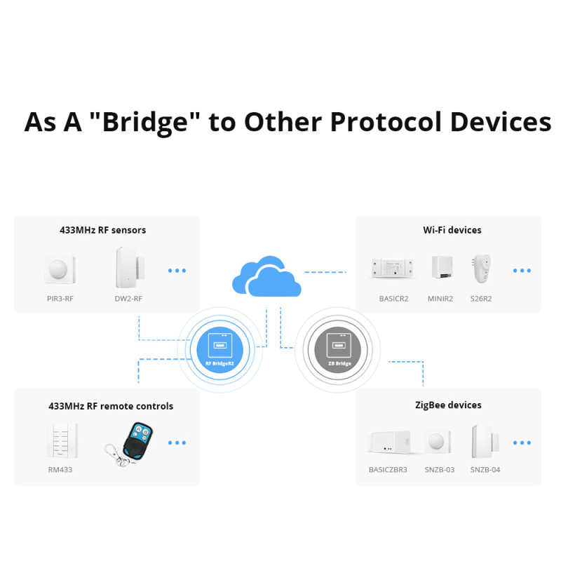 SONOFF RF Bridge R2 433MHz RF Wi-Fi Wireless Gateway Smart Scene Home Security Support DW2-RF PIR3-RF Sensor via eWeLink Alexa
