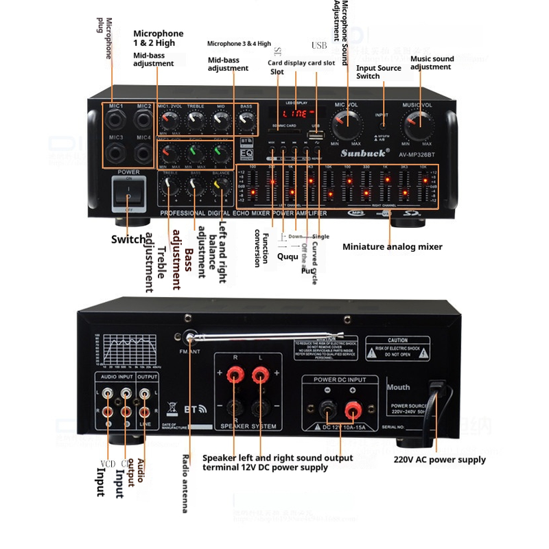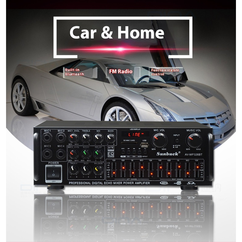 SUNBUCK Sound Amplifier Home Car Bluetooth Audio Power Amplifier EQ Equalization Card Receiver Subwoofer Power Amplifier